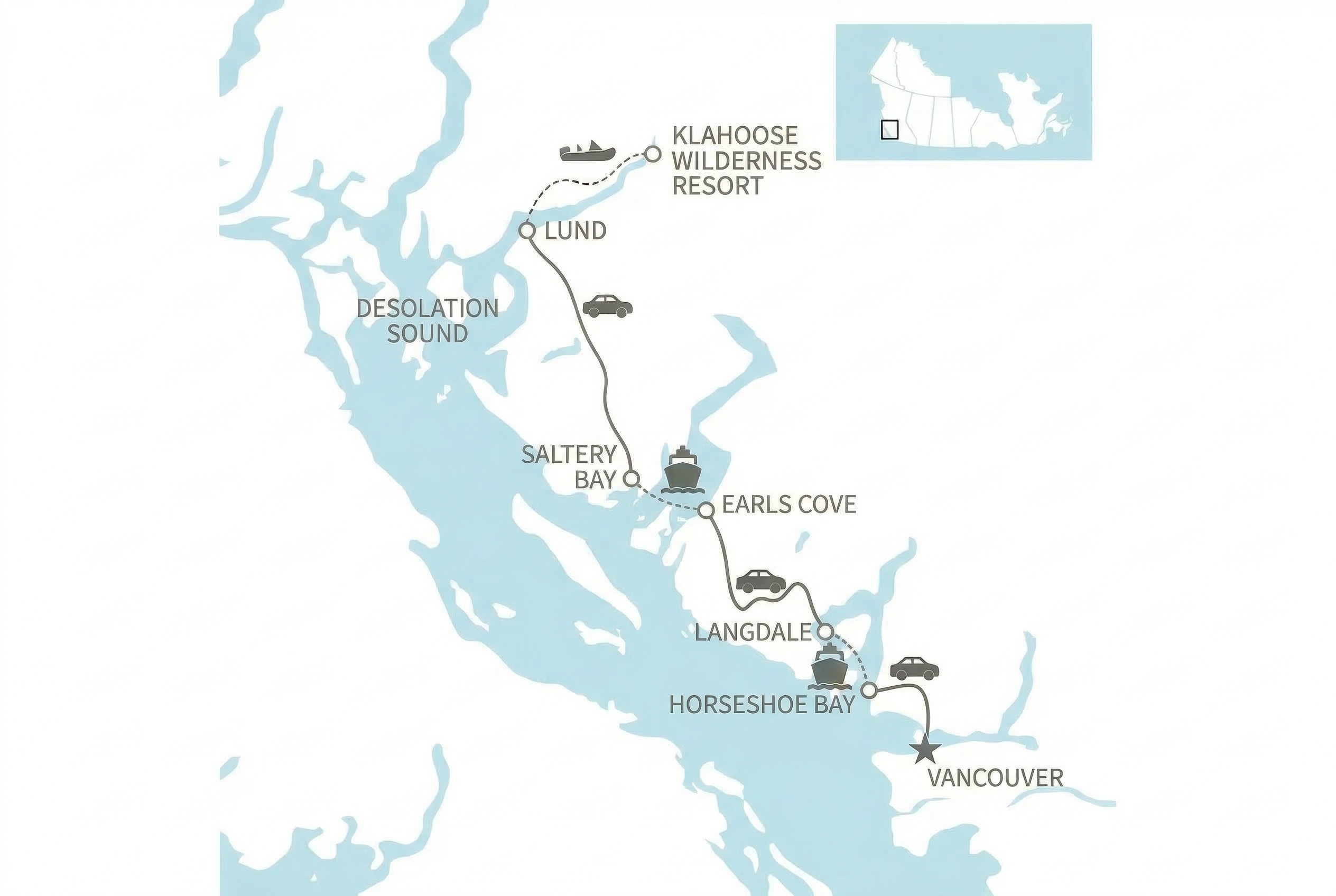 From the cosmopolitan energy of Vancouver to the quiet wilderness of the Salish Sea, this thoughtfully curated journey explores the deep connections between land, water, and culture along British Columbia’s coast. Begin with time to experience Vancouver’s vibrant waterfront, coastal forests, and celebrated culinary scene before travelling north along the Sunshine Coast by ferry and scenic road. At Klahoose Wilderness Resort, Indigenous hosts welcome you into a place of powerful natural beauty and living tradition, where wildlife excursions, cultural experiences, and moments of restoration unfold along the sheltered waters of Desolation Sound.
