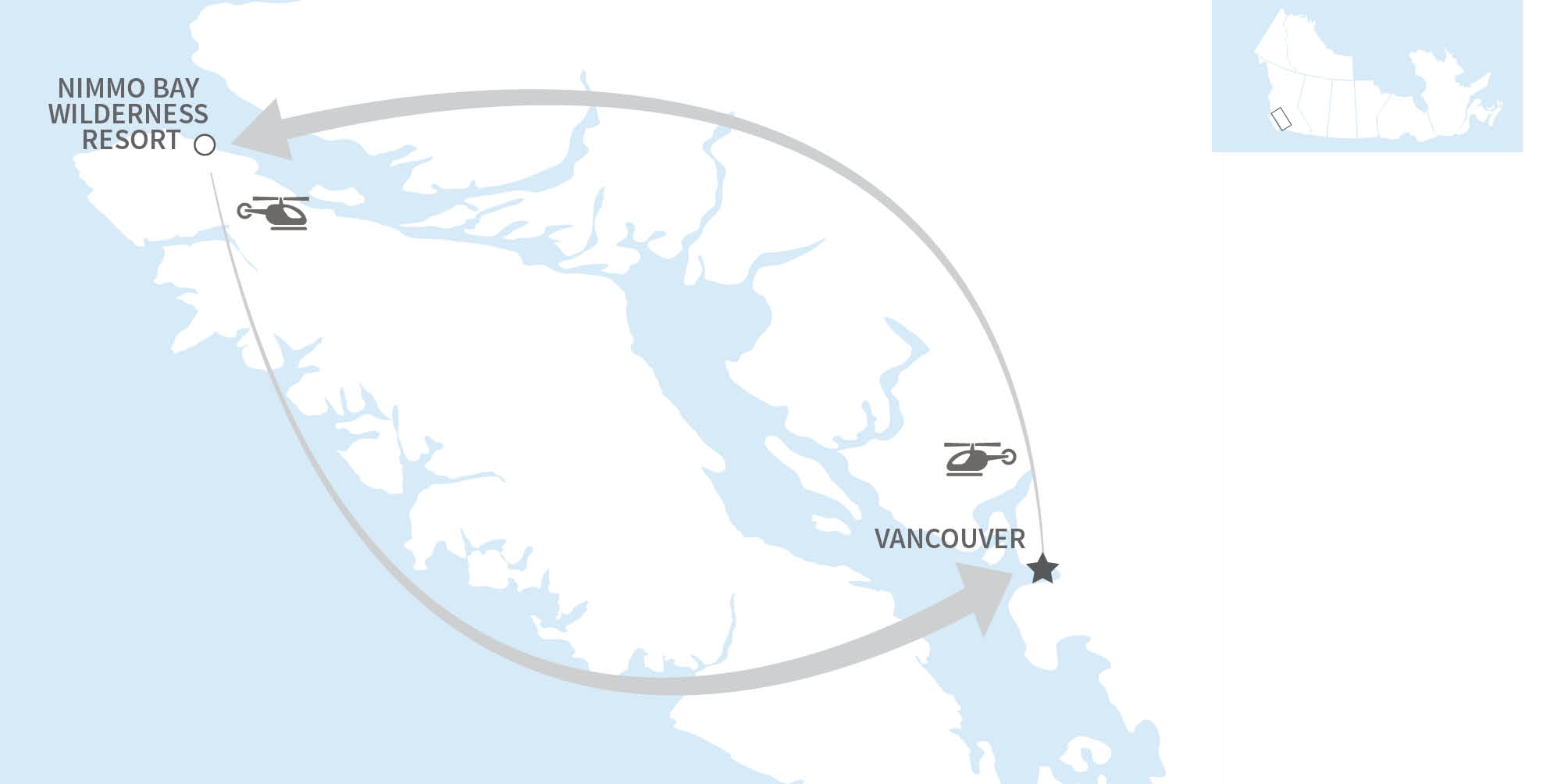 After a final breakfast at the lodge, bid farewell to Nimmo Bay and its unforgettable surroundings. Your return flight offers one last aerial perspective of British Columbia’s rugged coastline before bringing you back to Vancouver. From here, continue onward with memories of untouched wilderness, extraordinary wildlife encounters, and meaningful cultural connections that define this journey.